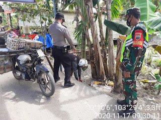 SERIBUPARITNEWS.COM,PELANGIRAN - Penindakan bagi pelanggar Protokes terus di lakukan Babinsa 10/Pelangiran kodim 0314/Inhil dan anggota Polsek Kec.Pelangiran Selasa (17/11/2020)
