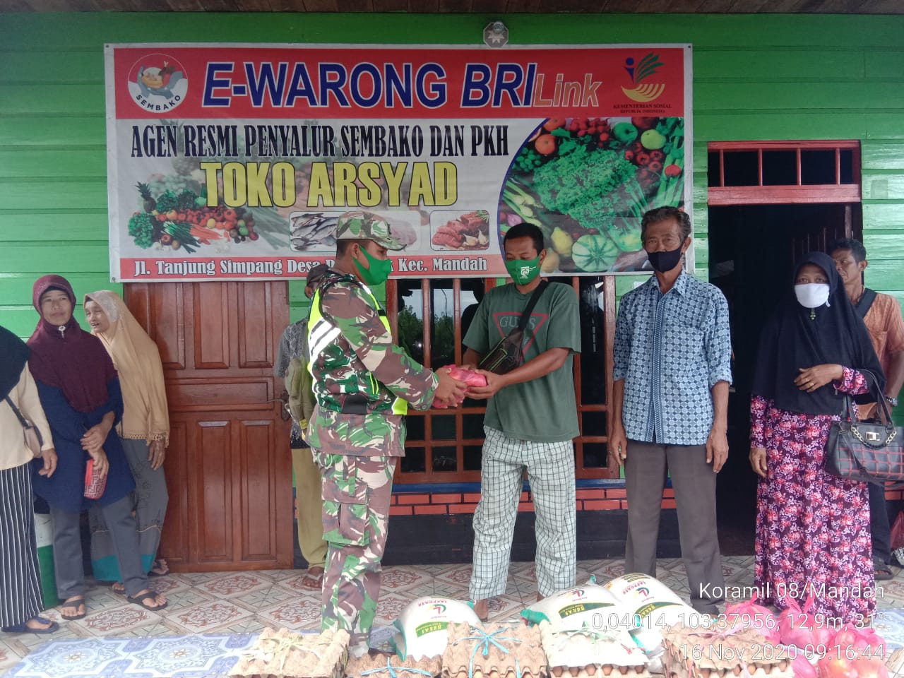 SERIBUPARITNEWS.COM, MANDAH -  Serda Erik Arianto Sibarani Babinsa Koramil 08/Mandah Kodim 0314/Inhil melaksanakan pendampingan kegiatan Penyaluran Bantuan Sosial Pangan ( BSP ) Di Desa Planduk Kecamatan Mandah Senin (16/11/2020)