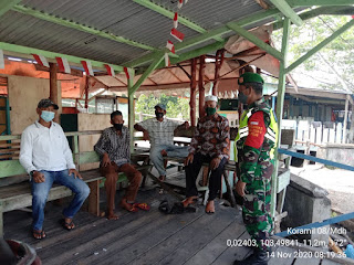 SERIBUPARITNEWS.COM,MANDAH - Babinsa Koramil 08/Mandah Kodim 0314/Inhil Koptu Adlis Penegakan Disiplin Protokol Kesehatan Covid -19 dengan warga di Pangkalan Ojek Kel. Khairiah Mandah KecamatannMandah Sabtu (14/11/2020)