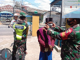 SERIBUPARITNEWS.COM, TEMBILAHAN - Personil Koramil 01/Tembilahan Kodim 0314/Inhil yang dipimpin Serma Indra mukri melaksanakan Pembagian Masker Gratis dan dilanjutkan dengan Sholat Jumat Berjamaah di Mesjid At-Taqwa Jln Imam Bonjol Parit 11 Kel Tembilahan Kota Kec Tembilahan Kab Inhil Jumat (13/11/2020)