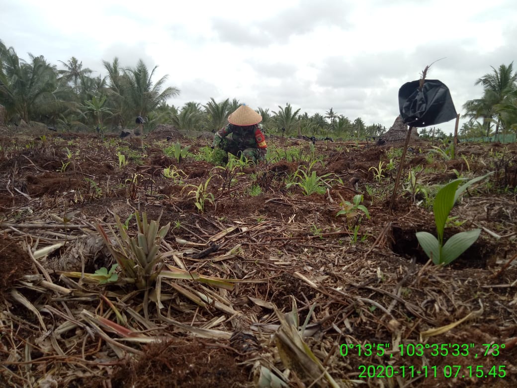 Rencana pengelolaan dan penanaman bibit Jagung seluas 1 hektar oleh Koramil 10 / Pelangiran dan Kelompok Tani dengan Program giat Karya Nyata serta membimbing masyarakat agar tidak membakar sembarangan dalam pengelolaan lahan yang baru di buka