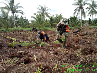 SERIBUPARITNEWS.COM,PELANGIRAN - Subsatgas tim 5 Koramil 10/Pelangiran Melaksanakan Pembuatan demplot ketahanan pangan dan Pendampingan penanaman jagung KARYA NYATA di lokasi Lahan milik Bpk Kardi parit Rasa Sayang,Desa Rotan Semelur,Kec Pelangiran Seni (09/11/2020)