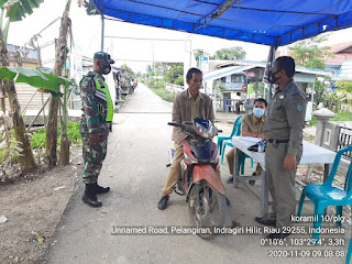 Babinsa Koramil 10/Pelangiran Kodim 0314/Inhil dan Satpol PP Kecamatan Pelangiran selalu melaksanakan Penegakkan Disiplin protokol kesehatan Covid-19.