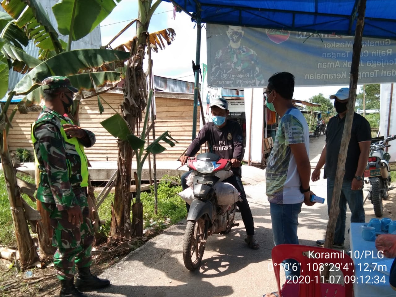 SERIBUPARITNEWS.COM, PELANGIRAN - Koramil 10/Pelangiran setiap hari melaksanakan  penegakkan Disiplin protokol kesehatan di kecamatan pelangiran