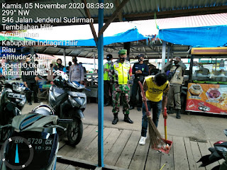 SERIBUPARITNEWS.COM, TEMBILAHAN - Wujud konsistensi Koramil 01/Tembilahan dalam memutus mata rantai penyebaran Covid -19 dan pencegahannya, Sertu Zulfahri melaksanakan pengawasan terpadu Kamis (05/11/2020)