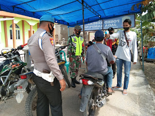 SERIBUPARITNEWS.COM,PELANGIRAN -  Koramil 10/Pelangiran  dan Personil Polsek pelangiran tetap kompak melaksanakan Pengecekan orang yg keluar masuk tdk menggunakan masker dan Pengecekan Suhu Badan bagi orang yg keluar masuk desa pelangiran Guna Percepatan Memutus Rantai  Penanggulangan Penyebaran Covid-19 Selasa (03/11/2020)