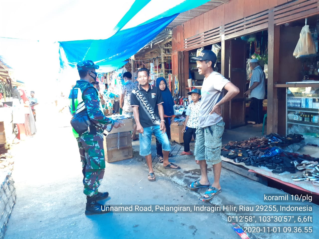SERIBUPARITNEWS.COM,PELANGIRAN - Babinsa Koramil 10/Pelangiran Koptu Dodimen sampai pagi masih bergelut dan berkutat seputar penegakkan disiplin protokol yang notabene masih menjadi tugas dan tanggung jawabnya selaku Babinsa dan tim gugus Minggu (01/11/2020)