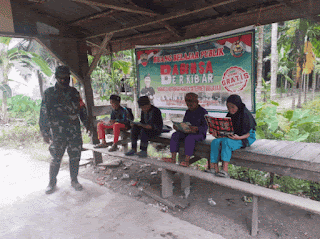 Dengan Babinsa Berkibar anak anak mengikuti dan menyelasaikan tugasnya secara daring atau online
