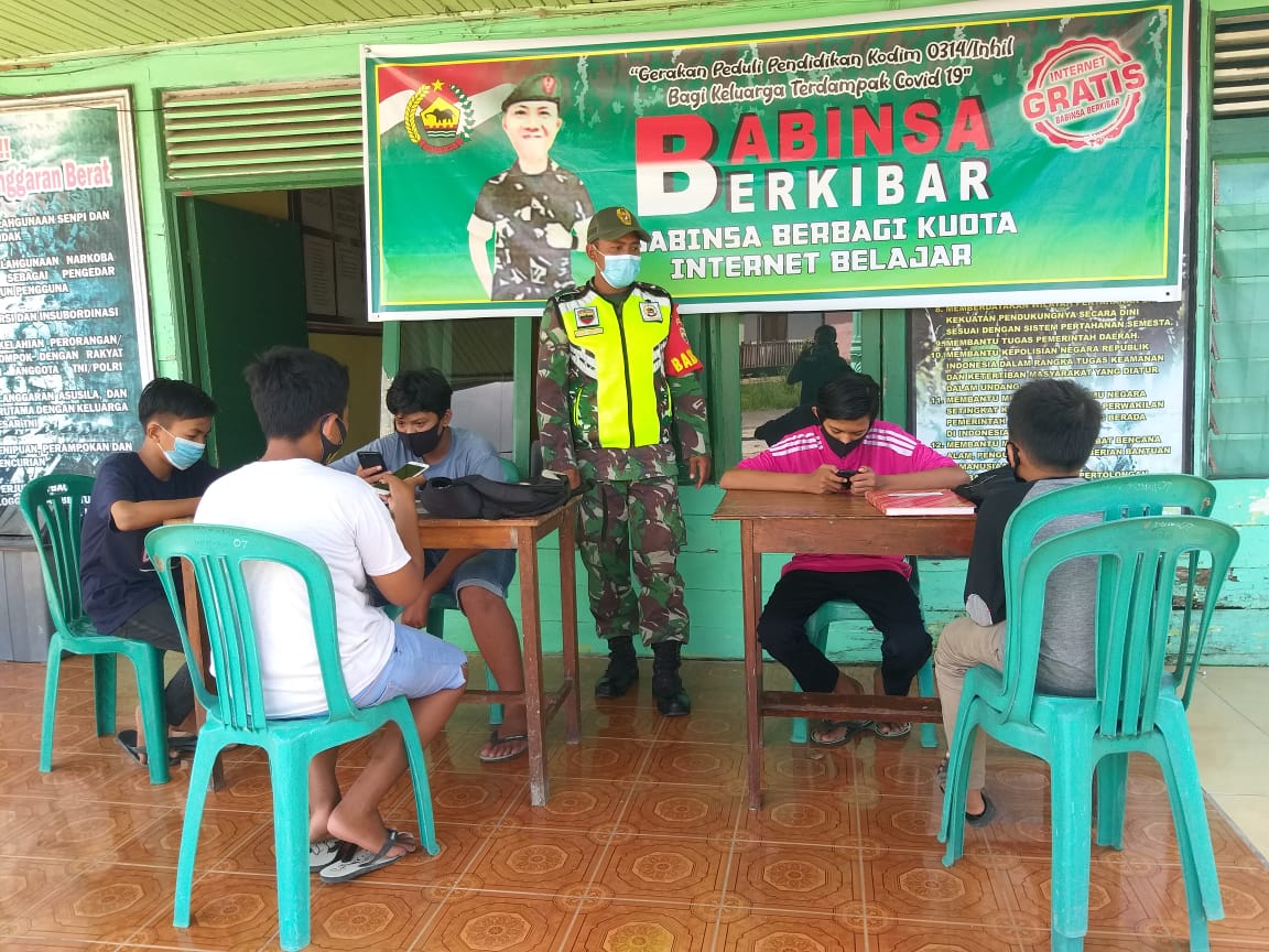 Babinsa Koramil 07/Reteh Serda Surya wibowo, memberikan bimbingan dan pengawasan terhadap giat itu merupakan bentuk kepedulian TNI terhadap warga yang kurang mampu terdampak covid-19 agar anak-anaknya dapat belajar dengan tidak terbebani kuota internet.