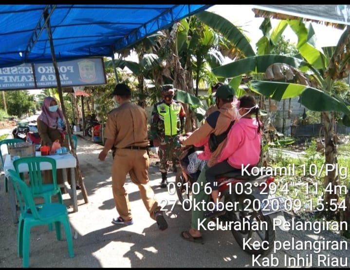Agar tidak kecolongan seperti wilayah yang lain, babinsa Koramil 10/Pelangiran instens melaksanakan pengawasan terpadu di pintu masuk dan pelabuhan di kelurahan pelangiran