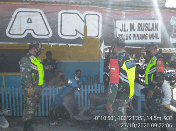 SERIBUPARITNEWS.COM,GAS - Dalam upaya menjaga tetap berjalannya protokol kesehatan diwilayah Koramil 05/Gaung Anak Serka, Serda Danu Kiswoyo melaksanakan pengawasan terpadu hari ini Selasa (27/10/2020)