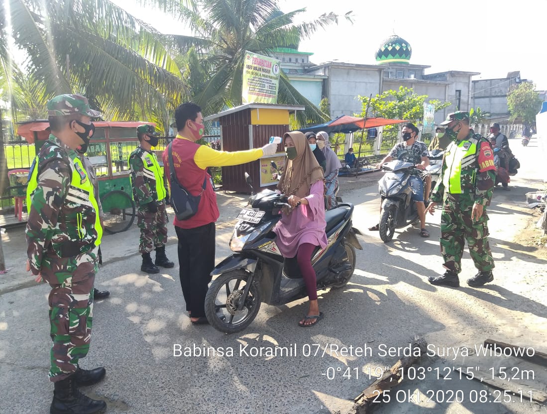 Hal ini terlihat saat Babinsa koramil 07/Reteh Jajaran Kodim 0314/ Inhil Seram Nofiandi, Serda Surya wibowo dan Serda Ramli bersama Anggita Polsek Reteh Sat Pol PP tem Kesehatan dan Relawan melaksanakan patroli pada  seputaran Pasar Pulau Kijang dan Jalan Umum Kecamatan Reteh,.