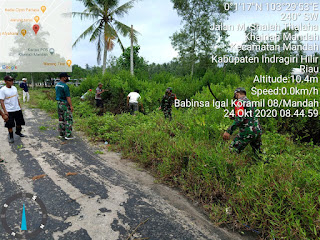 Babinsa Igal Koramil 08/Mandah bersama warga Serka H.Situmorang bergotong royong. Membersihkan lokasi akan penyelenggaraan Perlombaan MTQ ke 50 tingkat kecamatan Mandah yang akan dilaksanakan pada tanggal 3 s.d 6 November 2020 di Kel.Khairiah Mandah Kec Mandah dengan peserta se Desa Kec. Mandah