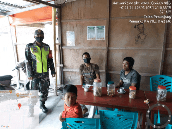 Koramil 07/Reteh Lakukan Penegakan Disiplin Protokol Kesehatan di Kelurahan Pualu Kijang Kecamatan Reteh.Kamis 22/10/2020