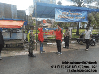 Melaksanakan pengecekan dan Himbauan di tempat keramaian dan fasilitas umum untuk pencegahan wabah virus Covid 19, di Pasar tradisional. Personil Koramil 07/Reteh selalu bekerja sama dengan Anggota Polsek Reteh dan Satpol PP Kecamatan Reteh,Tim Kesehatan dan Relawan melaksanakan himbauan kepada masyarakat, terlebih khususnya kepada para pedagang dan pembeli di pasar tradisional, dalam rangka melaksanakan penerapan disiplin dalam mematuhi protokol kesehatan.