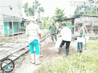 Alhamdulillah hari ini, saya bersama masyarakat kompak melakukan semenisasi jalan di Parit Bidan Desa Lahang Hulu " ungkap Serda Jonlis