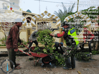 SERIBUPARITNEWS.COM - GAUNG ANAK SERKA - Babinsa Teluk Pinang Koramil 05/Gaung Anak Serka Kodim 0314/Inhil Serda Danu Kiswoyo di Hari Jumat bersama warga melaksanakan Gotong royong (16/10/2020)