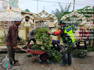 Babinsa Teluk Pinang Koramil 05/Gaung Anak Serka Kodim 0314/Inhil Serda Danu Kiswoyo bersama Warga Laksanakan Gotong Royong bersama Warga di Hari Jumat