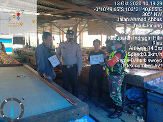 SERIBUPARITNEWS.COM, GAUNG ANAK SERKA - Babinsa Teluk Pinang Koramil 05/Gaung Anak Serka Kodim 0314/Inhil Serda Danu Kiswoyo memeriksa dengan teliti setiap warga yang melewati pelabuhan ,penyeberangan dan jalan masuk pasar dalam penegakkan disiplin protokol kesehatan Selasa (13/10/2020)