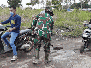 SERIBUPARITNEWS.COM, PULAU BURUNG - Pada pagi ini minggu Tanggal 11 Oktobrr 2020 mulai pukul 08:00 Wib 30 orang Warga masyarakat bersama anggota 3 anggota TNI telah melaksanakan Gotong Royong perbaikan/semenisasi jalan poros serta penyisipan jalan berlobang di RT 02 RW 05 Dusun Besika Jaya desa Pulau burung Kec Pulau Burung Kab Inhil Provinsi Riau