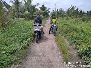 Rute yang diambila dalam sosialisasi dan patroli karhutla yakni Jalan pasar baru ,desa pinang jaya kec pelangiran.