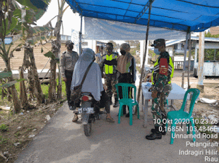 Penegakkan disiplin yang dilakukan Babinsa Koramil 10/Pelangiran hari ini yakni Pengecekan orang yang keluar masuk tidak menggunakan masker dan Pengecekan Suhu Badan bagi orang yang keluar masuk desa pelangiran