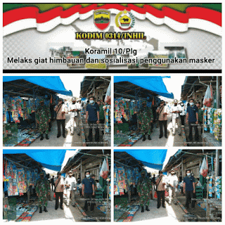SERIBUPARITNEWS.COM, PELANGIRAN - Seusai Kegiatan Monitoring dan sosialisasi di Desa Teluk Bunian, Pjs.Danramil 10/Pelangiran bersama Forkopincam melaksanakan Gakplin protkes berupa himbauan pemakaian masker di Pasar desa teluk Bunian Kamis (24/09/2020)
