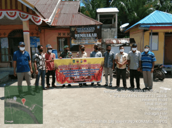 SERIBUPARITNEWS.COM, PELANGIRAN - Dandim 0314/Inhil melalui Pjs.Danramil 10/Pelangiran Pelda Samsuir melaksanakan Monitoring dan sosialisasi Karhutlah di Desa Teluk Bunian Kecamatan Pelangiran Kamis (24/09/2020)