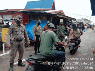 unsur Forkomincam telah melaksanaan tugas dilapangan memberikan arahan/sosialisasi kepada masyarakat tentang Peraturan Bupati INHIL no 50 thn 2020 tentang prosedur yang harus di laksanakan oleh setiap warga,Pemilik Toko dan Pengunjung/pembeli tentang Gakplin Pemakaian masker serta menjaga jarak dan cuci tangan apa bila keluar rumah supaya terhindar dari penyebaran virus covid 19.
