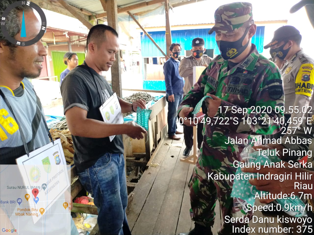 SERIBUPARITNEWS.COM, GAUNG ANAK SERKA - Danramil 05/Gaung Anak Serka Kodim 0314/Inhil Kapten Arh.Panca Prasetyo menggerakkan Tim Gugus Tugas dalam pengawasan terpadu Gakplin Protkes Kamis (17/09/2020)