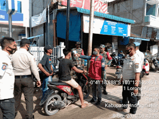 Babinsa Koramil 07/Reteh ,Kodim 0314/Inhil melaksnakan pengawasan Protokol Kesehatan guna mencegah penyebaran Virus Covid-19 di Pasar teradisional dan Tenpat tempat Keramaian Pulau Kijang Kecamatan Reteh harus wajib mematuhi protokol kesehatan pencegahan Covid19, Rabu (09/09/2020).