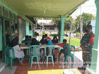 Danramil mengarahkan seluruh Babinsa di jajarannya untuk melaksanakan Program " BABINSA BERKIBAR " Babinsa Berbagi Kuota Internet Belajar, Babinsa menyediakan layanan wifi portable dan menyiapkan ruangan atau tempat yang bisa digunakan anak-anak untuk belajar. Tempat belajar tidak harus di tempat formal seperti ruangan khusus, bahkan dalam hal ini program ini bisa diadakan di teras, di bawah pohon ataupun tempat lainnya yang layak yang dapat dijadikan sebagai sarana belajar darurat.Ucapnya
