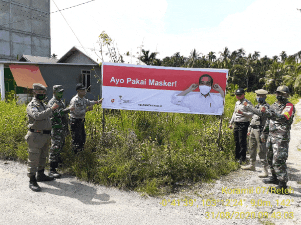 Pemasangan baliho yang bergambar Presiden Joko Widodo dan Upika Kecamatan Reteh mengajak seluruh elemen masyarakat untuk memakai masker. Lalu, baliho dengan seluruh yang juga turut menyampaikan pesan untuk memakai masker.