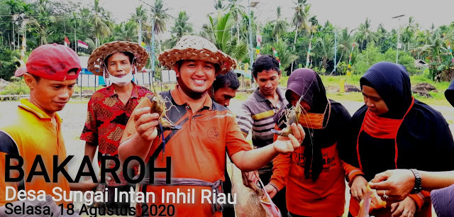 Kegiatan Budaya Bakaroh desa sungai intan cukup meriah  warga antusias menjaring udang dan ikan di aliran sungai /parit desa sungai intan