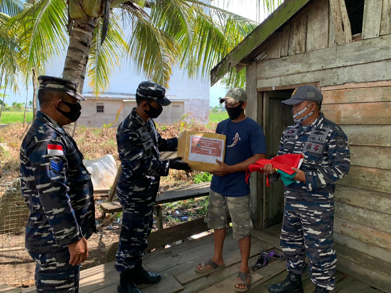 Selain itu prajurit Posal juga membagikan Bendera Merah Putih dan umbul-umbul kepada warga pesisir yang berada di sekitar Pos TNI AL Tembilahan. Minggu (16/8/20).