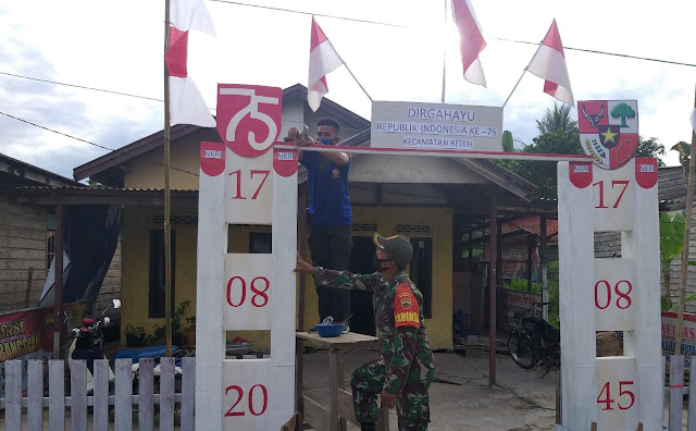 Kapten Arm Syahrul Effendi Pohan selaku Danramil 07/Reteh,kita harus aktip di setiap kegiatan di desa binaan nya, dan tugas Babinsa untuk membantu kegiatan yang positif di wilayah binaannya, seperti halnya yang dilakukan Serda Surya Wibowo bersama warga salah satu warga yang membangun gapura menyambut HUT RI Ke 75 THN, dengan semangat yang tinggi untuk memeriahkan walaupun di masa Corona,Bapak Joni Iskandar ini yang lahir tepatnya tanggal 18/08/1975 dan pada tahun ini 18/08/2020,dan untuk memperingati setiap tahunya selalu semangat yang tinggi,dan pada tahun ini lebih semangat lagi karena tepat pada tgl 18/08/2020 genap di Usia 45 Tahun.