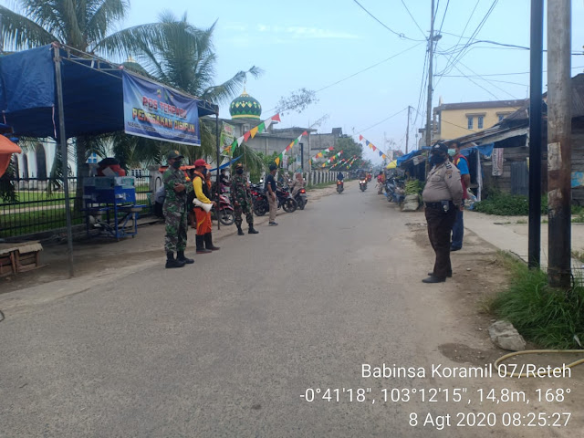 Petugas gabungan Gugus Tugas Percepatan COVID-19 di Kecamatan Reteh yang terdiri dari TNI-POLRI, SAT POL PP, TEM KESEHATAN DAN RELAWAN,Selalu memberikan himbauan trus menerus tentang mendisiplinkan protokol kesehatan kepada warga,karena kita harus waspada tetang perkembangan covid 19,karena kita harus bekerja sama dalam memerangi dan memutuskan mata rantai covid 19,dan terutama kita harus menjaga daerah kita agar terhindar dari penyebaran covid 19 ini. Sabtu (08/8/2020).