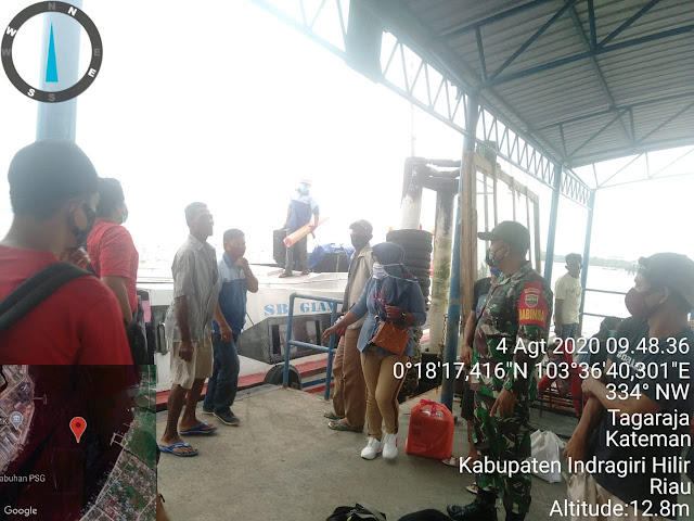 SERIBUPARITNEWS.COM,KATEMAN - Babinsa Koramil 06/Kateman Sertu Pujiantoro hari ini tetap melaksanakan penegakkan disiplin protokol kesehatan di Pelabuhan Syahbandar Sungai Guntung Selasa (04/08/2020)