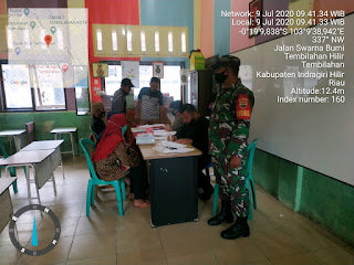 SERIBUPARITNEWS.COM, TEMBILAHAN - Babinsa Tembilahan Hilir Koramil 01 Tembilahan Serma Indra Mukri hari ini terus mengawal penyaluran BST di Lingkungan Kelurahan Tembilahan Hilir tanpa bosan Kamis (09/07/2020)