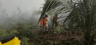 SERIBUPARITNEWS.COM, TEMBILAHANHULU - kepala Desa Sei Intan Ahmad Efendi,S.Pdi bersama Bhabinkamtias Bripka Dedy, Babinsa Serda Suherman dan Relawan Masyarakat Peduli menyisir kebakaran lahan perkebunan milik masyarakat Sabtu (04/07/2020)