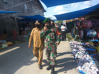*Serda Danu Kiswoyo bersama Lurah, tenaga medis melaksanakan himbauan kepada pengujung pasar*