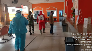 SERIBUPARITNEWS.COM, TEMBILAHAN - Dalam Rangka Menyambut Hari Bhayangkara Ke -74 Personil Koramil 01 Tembilahan Ikut berpartisipasi aktif dalam kegiatan penyemprotan desinfektan guna mencegah penyebaran covid-19 Sabtu (27/06/2020)