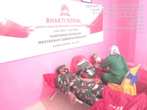 Dalam kesempatan tersebut Danramil 06/Kateman Kapten Inf.Iwan Andhoko menyampaikan pesannya bahwa setetes darah yang kita donorkan akan menolong 1000 umat