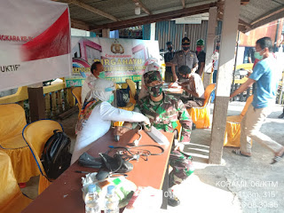 SERIBUPARITNEWS.COM,KATEMAN - Dalam rangka HUT Bhayangkara Ke -74 Personil Koramil 06/Kateman ikut serta berpartisipasi dalam bakti sosial di Mapolsek Kateman Jumat (26/06/2020)