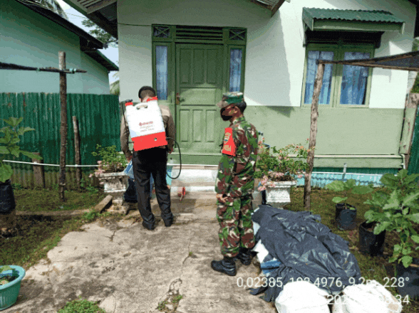 *Bhakti Sosial HUT Bhayangkara Ke -74 Koramil 08 Mandah Dan Polsek Mandah bersinergi Lakukan Penyemprotan*