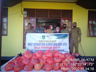 SERIBUPARITNEWS.COM, KATEMAN - Babinsa Beringin Mulya Kecamatan Teluk Belengkong Koramil 06/Kateman Sertu Pujiantoro melaksanakan Penyaluran Bantuan Sembako Tahap III (Terakhir) Senin (15/06/2020)