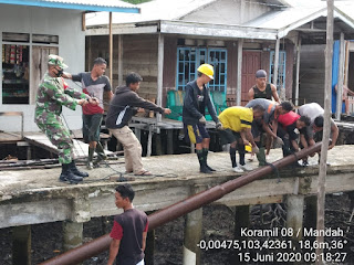 SERIBUPARITNEWS.COM, MANDAH - Babinsa Bakau Aceh Korami 08 Mandah Serda Erik Arianto Sibarani bersama Warga Desa Bakau melaksanakan Gotong Royong Senin (15/06/2020)