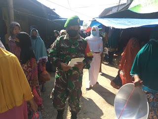 Serda Danu Kiswoyo Babinsa Teluk Pinang  Koramil 05/Gas  melaksanakan  penegakkan disiplin protokol kesehatan  pada pengunjung pasar tradisional yang sedang belanja di pasar Kel. Teluk pinang  Kec. Gaung Anak Serka Senin,,15/06/2020 pagi tadi.