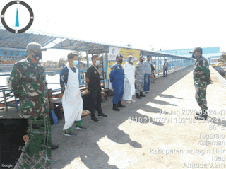 SERIBUPARITNEWS.COM, KATEMAN - Personil Babinsa Koramil 06 Kateman Yang dipimpin Pelda Samsuir hari ini terus melaksanakan penegakkan disiplin terpadu protokol kesehatan penyebaran Covid-19 di Pelabuhan Syahbandar Kecamatan Kateman Minggu (14/06/2020)