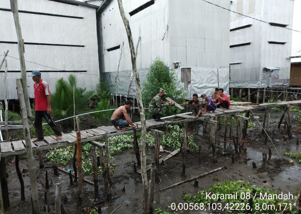 Masyarakat sangat antusias membantu Babinsanya dalam memperbaiki jalan Pelantar yang merupakan akses utama warga dalam mobilisasi kegiatannya sehari hari